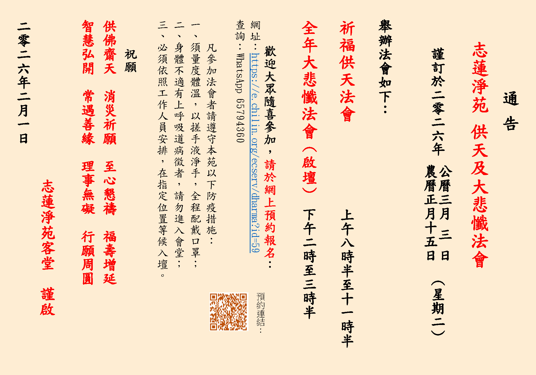 祈福供天及全年大悲懺法會(啟壇)